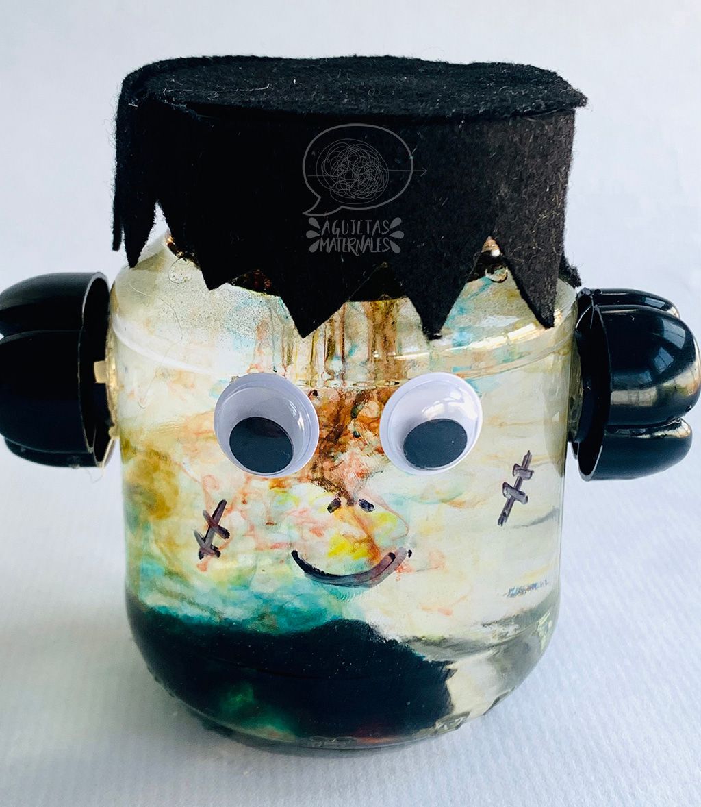 1️⃣ En un tarro (el de Frankie en este caso) llena de agua tibia dejando un par de dedos sin rellenar.