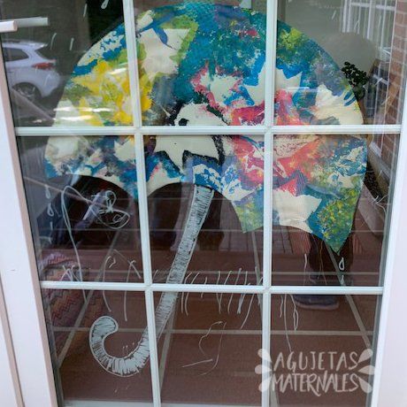 y nosotros lo pusimos en la entrada de casa que tiene una puerta de cristal. En cualquier ventana podemos hacer una actividad parecida.