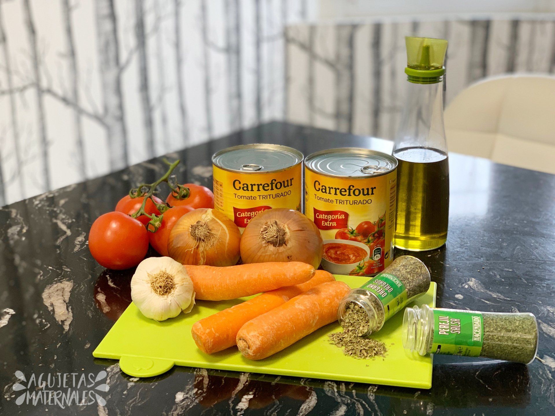 - 2 latas de tomate triturado de 800 g cada una
