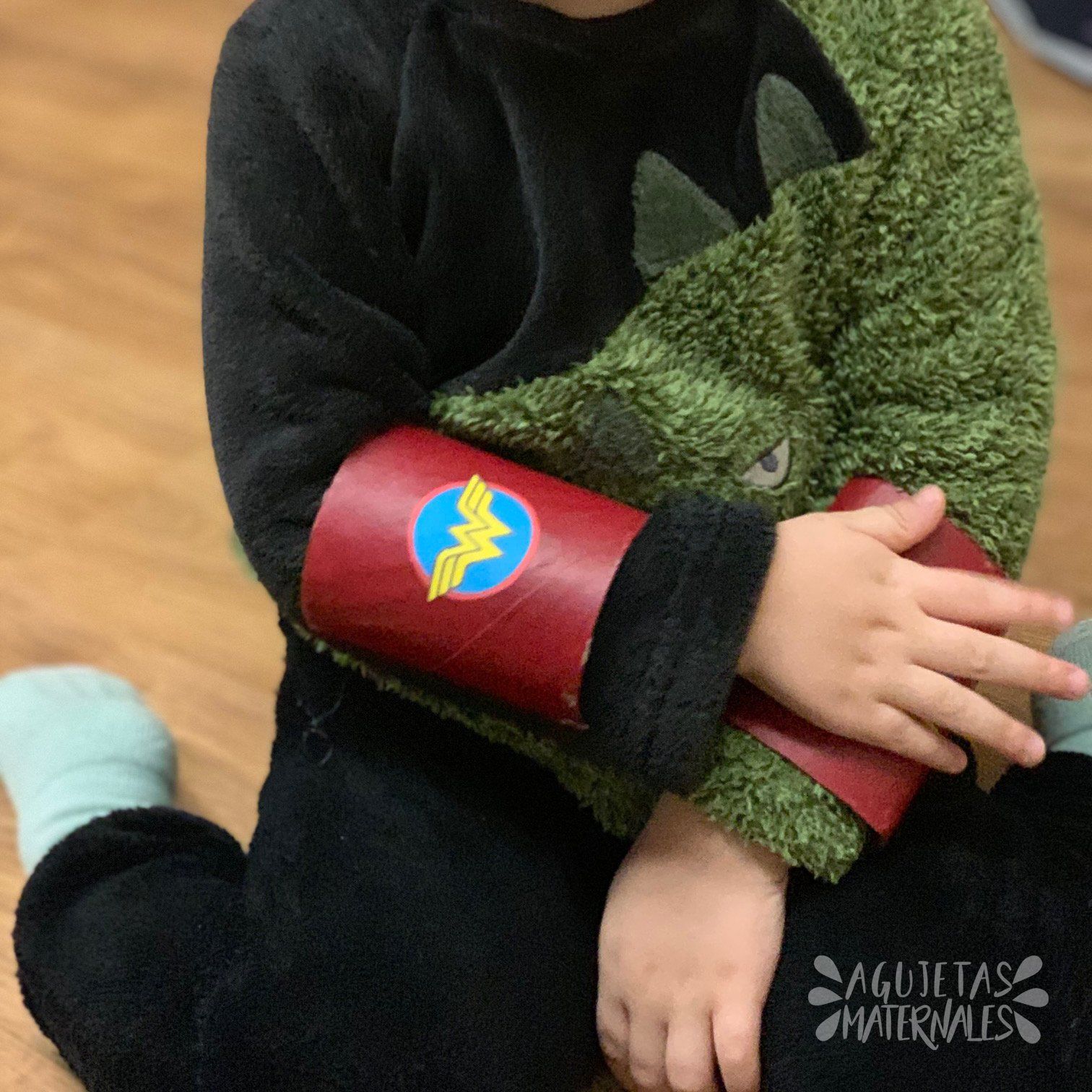 Últimamente veo que a Torpedín le lleman mucho la atención los superhéroes. Para ayudarle a meterse en harina, y jugar con él, esta semana le hice unos brazaletes de superhéroe. Son muy sencillos, y promoverás que practique el juego simbólico, que es muy beneficioso para su desarrollo.