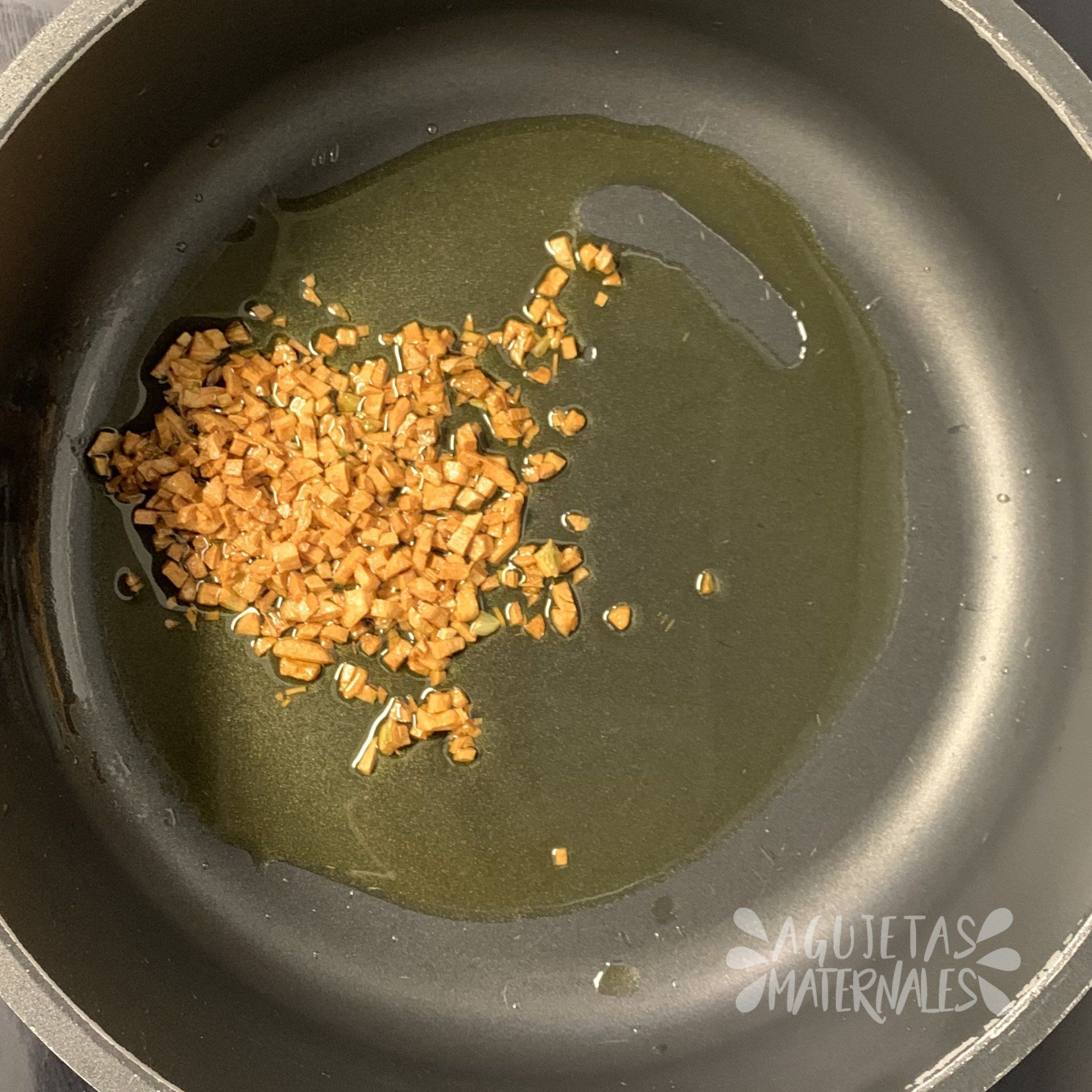 y mientras corta los 4 dientes de ajo en trocitos muy pequeños.