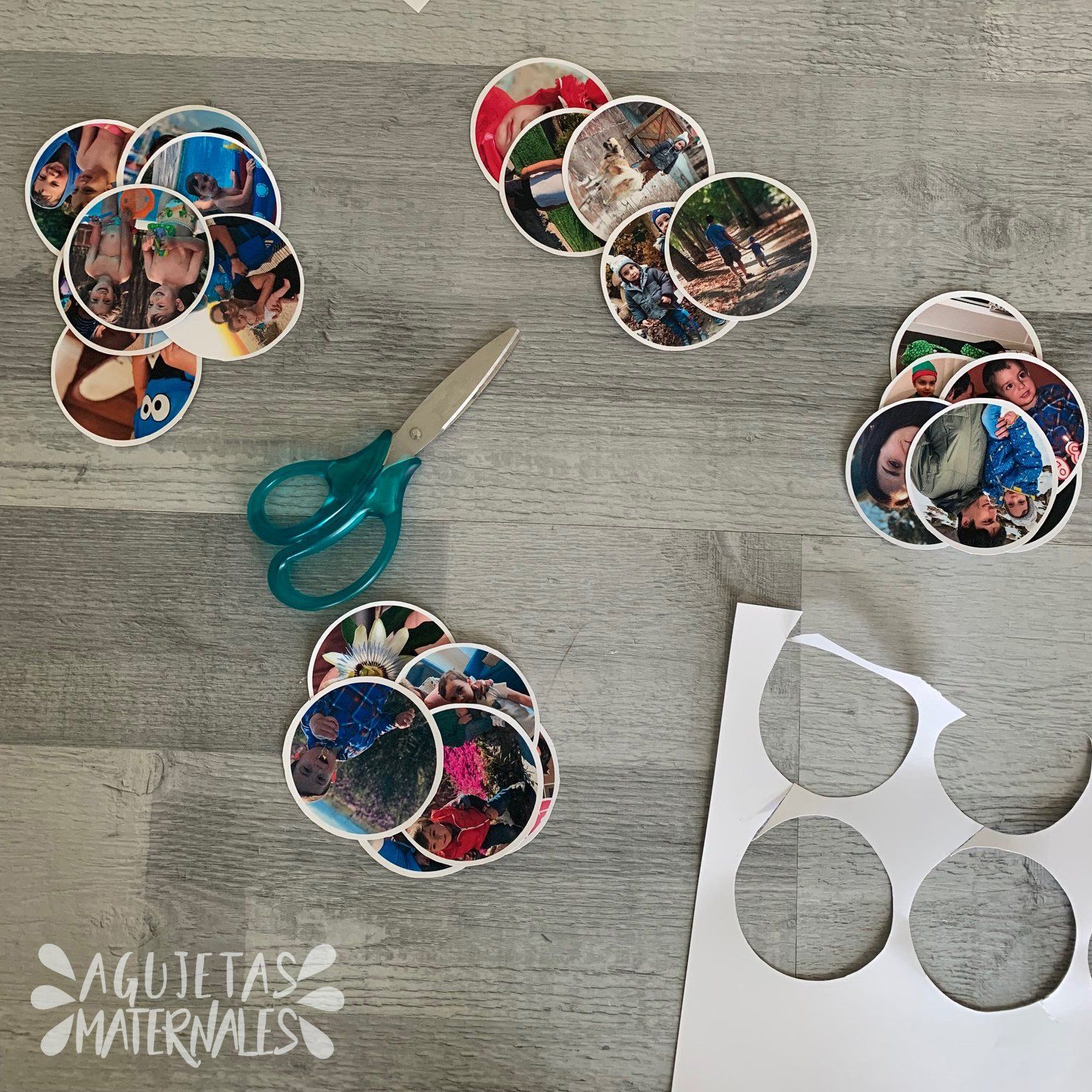 Yo les he dado a las fotos forma circular, pero puedes hacerlas cuadradas si quieres.