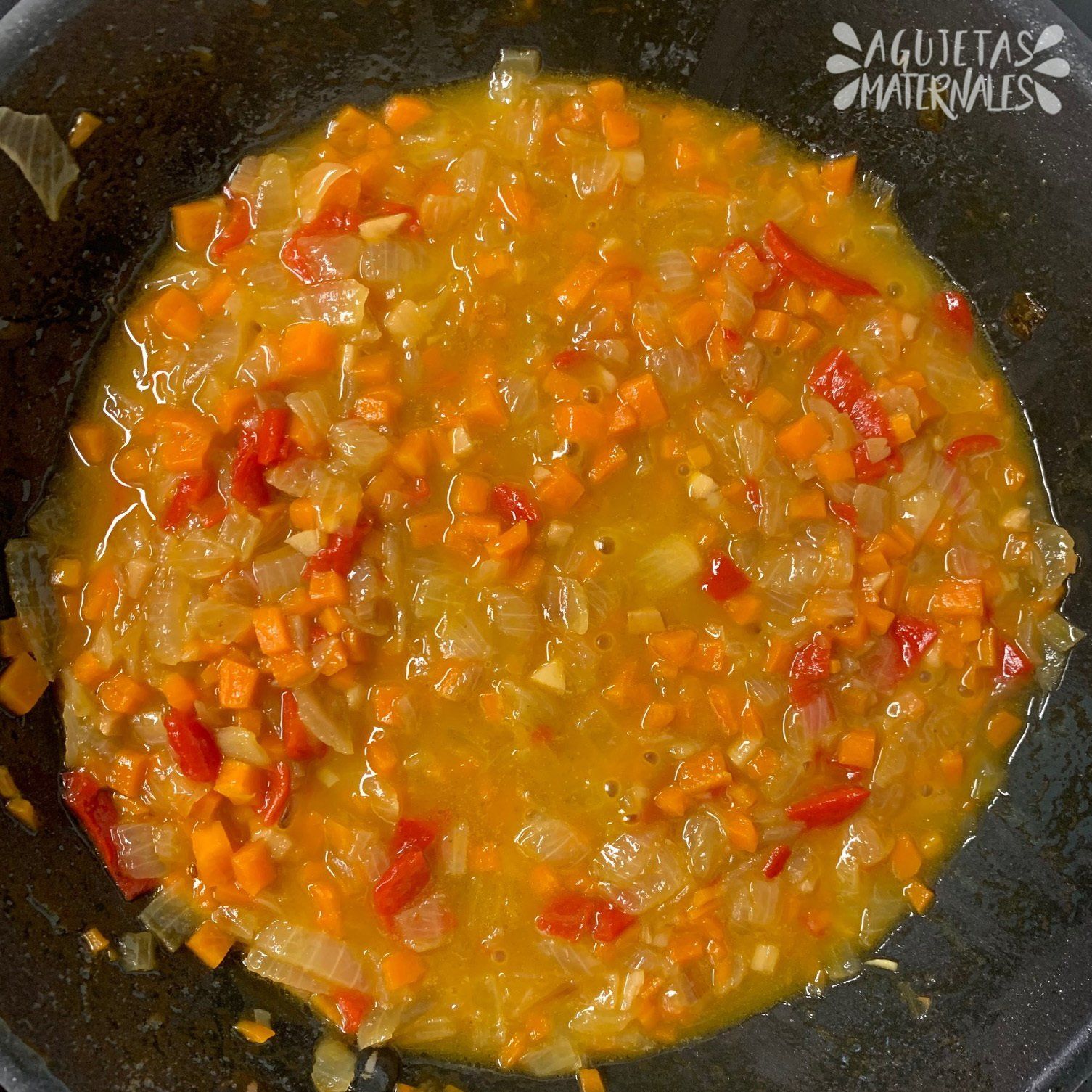 - Reservamos y dejamos enfriar para rellenar los pimientos.