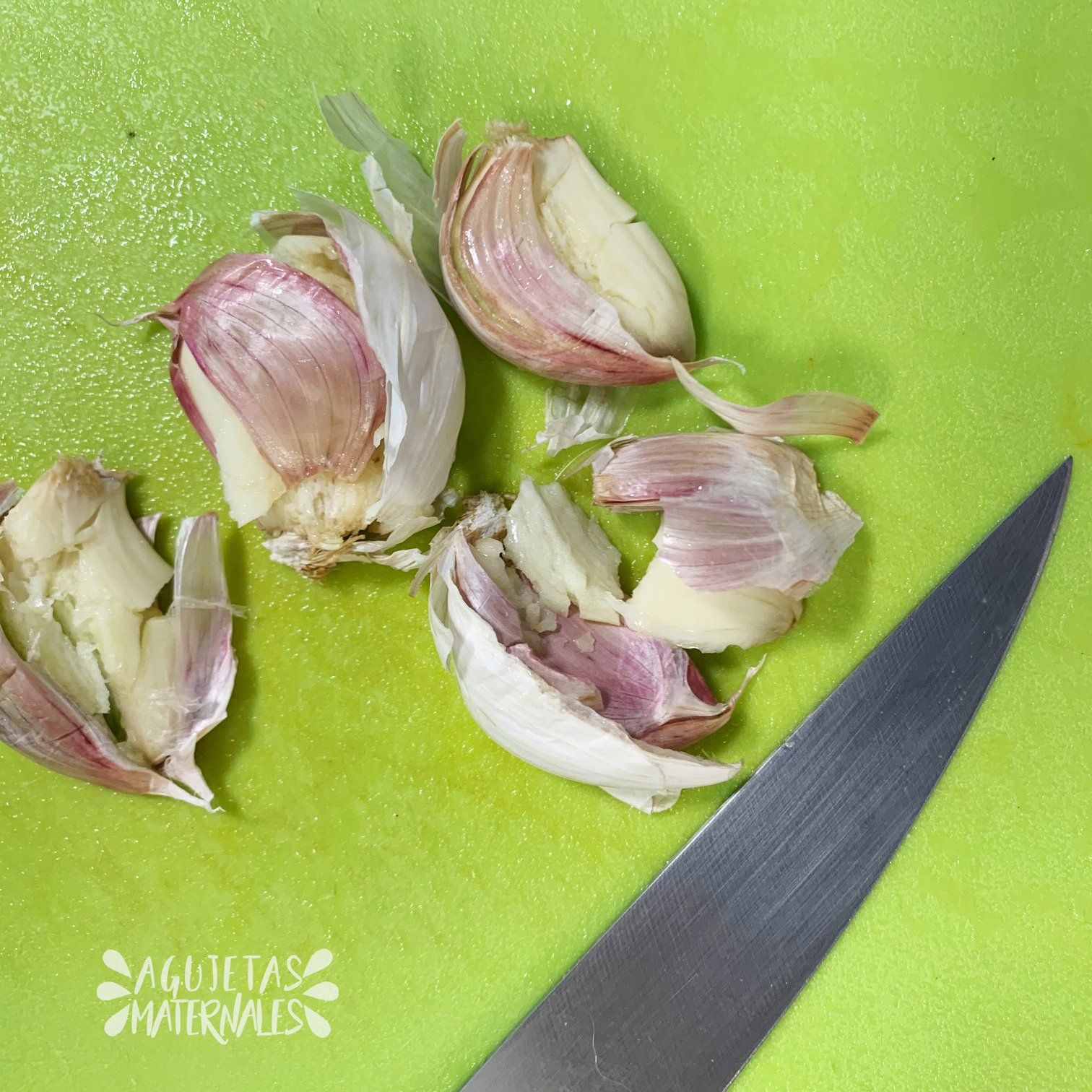 Dales un golpe seco en la tabla para que se abran y suelten sabor, pero deja la piel.