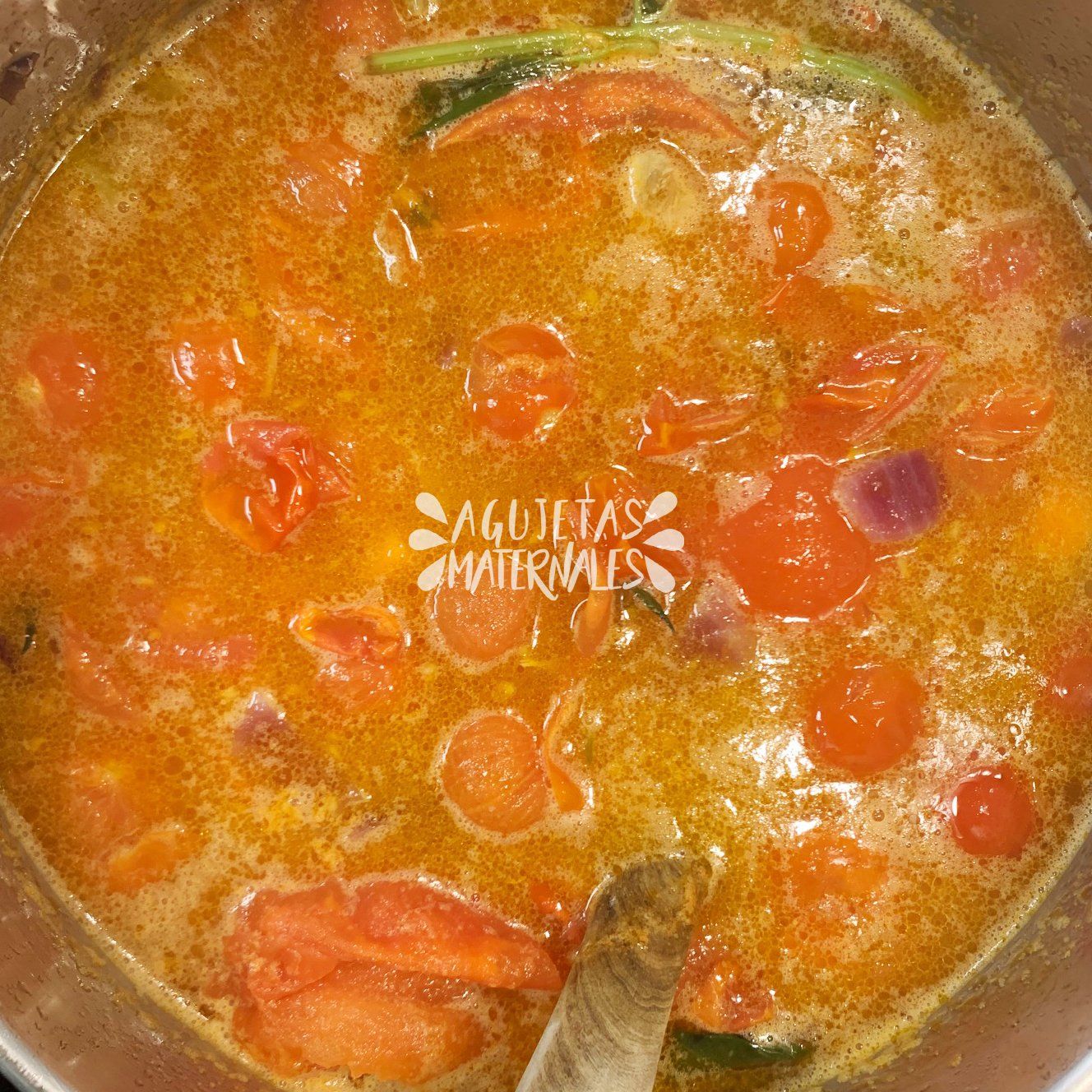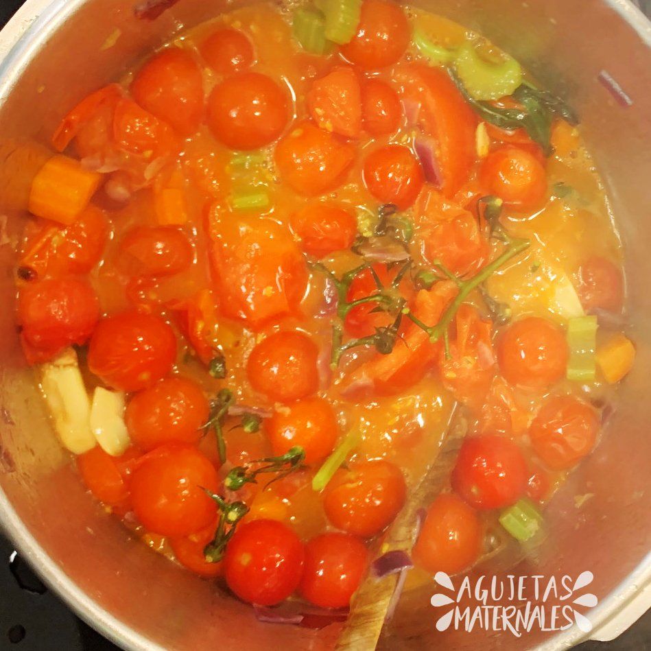 en esta sopa. Y si tienes la rama de tomates en rama normales, puedes echarla para añadir sabor.